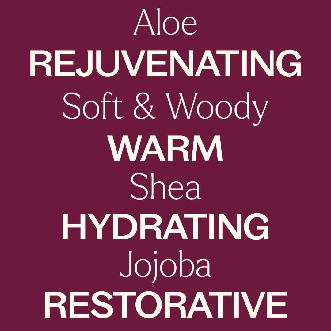 Infused with Aloe Vera, Shea Butter, and Jojoba Oil, the lightweight formula absorbs effortlessly, leaving skin soft, supple, and deeply nourished. Ideal for daily use, it helps restore moisture, relieve dryness, and keep skin feeling healthy and hydrated. The subtle scent adds a touch of warmth that makes everyday hydration feel a little more indulgent.